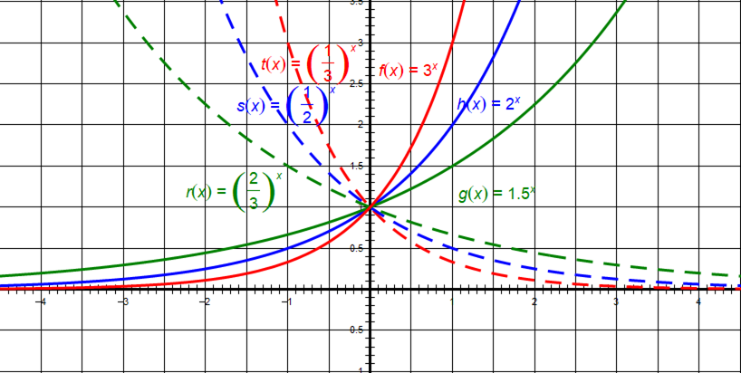 例如,\(y=\left(\frac{1}{2}\right)^{x}\)的图象,同样经过点\((0,1)\),随着\(x\)的增大,\(y\)的值逐渐减小,趋近于\(0\)。